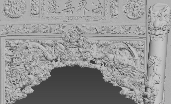 Artec在其案例研究中指出:“它的三个门是由四个方形墩形成的,这些墩由正面的四列和背面的四列支撑。大门的穹顶因其精心雕刻的朵朵牡丹,成熟的柿子,中国传统毛笔,纸扇,珍藏的书籍等而著称。此外,在寺中还发现了20多个不同姿势的石雕狮子。拱门中间。” 在非常狭窄的空间中进行扫描需要保留很多细节,以保留文化艺术品,但是3D扫描技术可以胜任。两个主要要求是每个元素都必须以绝对准确的方式进行渲染,并且在3D模型中没有任何间隙,并且母版必须能够分解为单独的结构部分,以便可以仔细检查整个拱门。